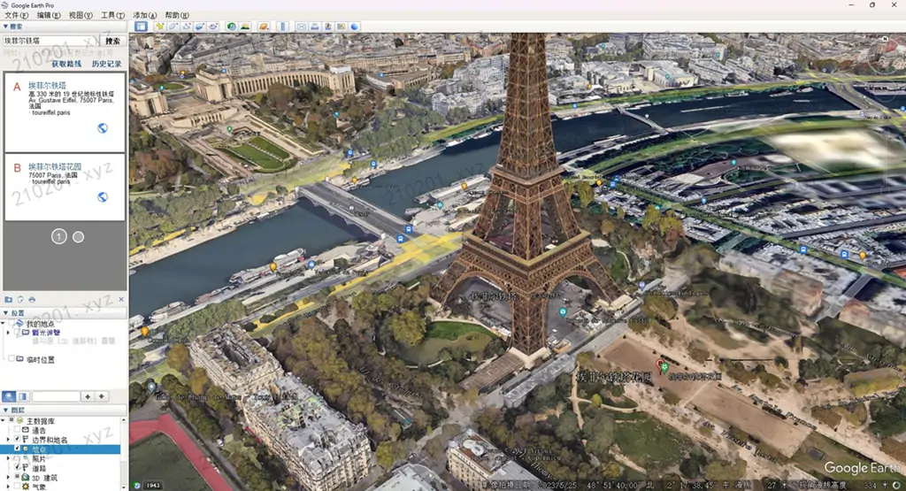 地形数据:Google Earth 包含详细的三维地形数据,包括山脉、河流、海洋等自然地貌。 三维建筑:用户可以查看全球各地的三维建筑模型,从著名地标到日常建筑均有涵盖。