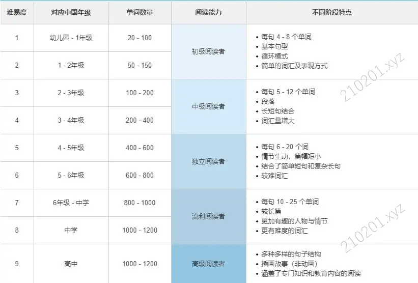 7阶短篇故事专门为小学较高年级到中学的学生设计。每个故事单词数量为800到1000字,每个句子由10 – 25个单词组成。内容开始涵盖包括人物传记,历史,世界地标等纪实文学。